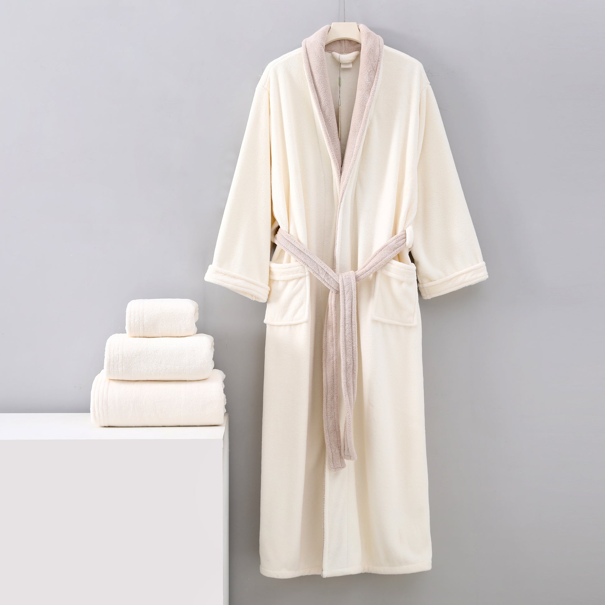 اختبر إحساس الفخامة والراحة مع روب الاستحمام من الكورال فليس، المصمم ليمنحك تجربة استثنائية بعد كل استحمام. يتميز بخامته الفاخرة كورال فليس (مايكروفايبر مطور)، والتي تعتبر من أنعم وأخف الأنسجة، مع قدرة امتصاص للماء تفوق الأقمشة التقليدية بـ7 مرات.