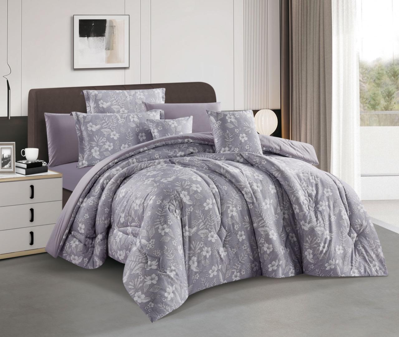 اجعل غرفة نومك تنبض بالفخامة والراحة مع طقم المفرش الفاخر، المصمم ليناسب جميع الأذواق بتصميم عصري وألوان جذابة. مصنوع من حشوة مايكروفايبر عالي الجودة ليمنحك إحساسًا ناعمًا ومريحًا أثناء النوم، كما يتميز بقماشه الفاخر من القطن الطبيعي 100% الذي يوفر التوازن المثالي بين البرودة والدفء ليناسب جميع الفصول.