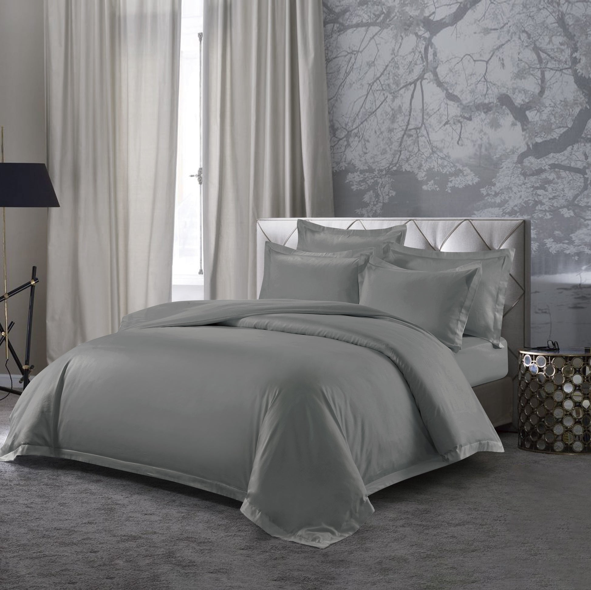 مقاسات متعددة حسب اختيارك (160×200 سم، 180×200 سم، 200×200 سم).- طقم مفرش فندقي مزدوج قطن 300 غرزة رمادي غامق (7 قطع):